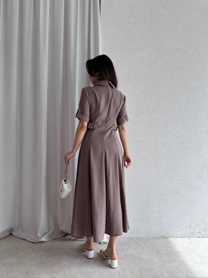 THANOS Maxi Elbise 8527 - Acı Kahve