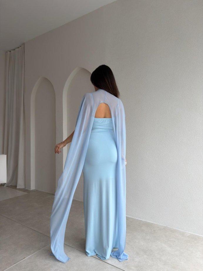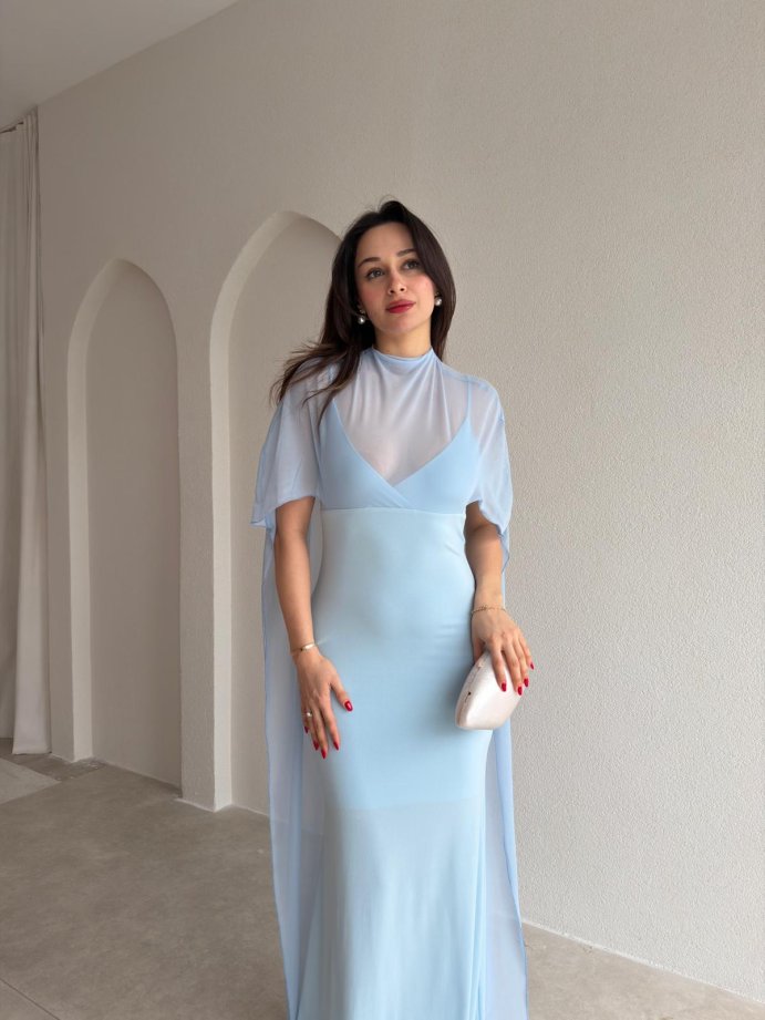 ROBBY Tül Parçalı Maxi Elbise 1819 - Bebe Mavi