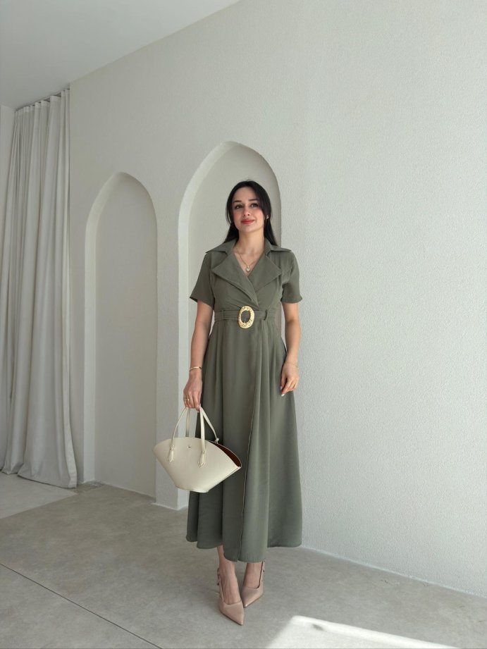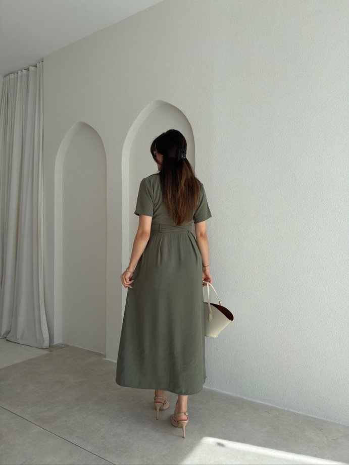 ROBERT Kemerli Midi Elbise 4782 - Haki