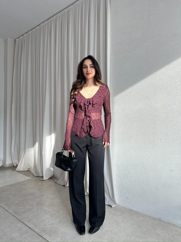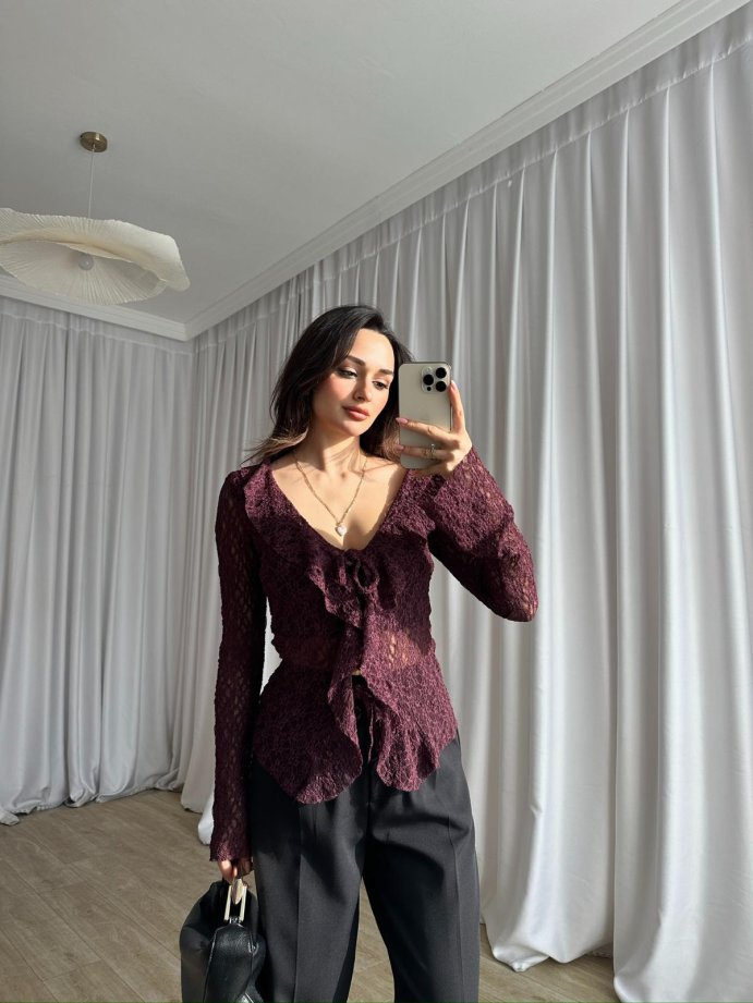 RODEO Dantelli Bluz 8394 - Acı Kahve