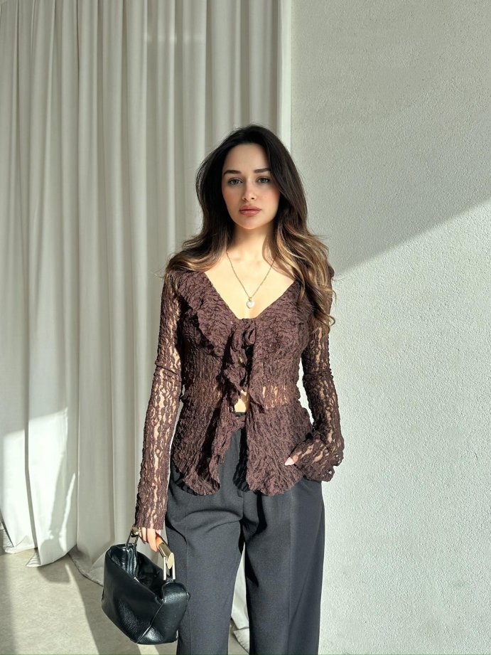 RODEO Dantelli Bluz 8394 - Acı Kahve