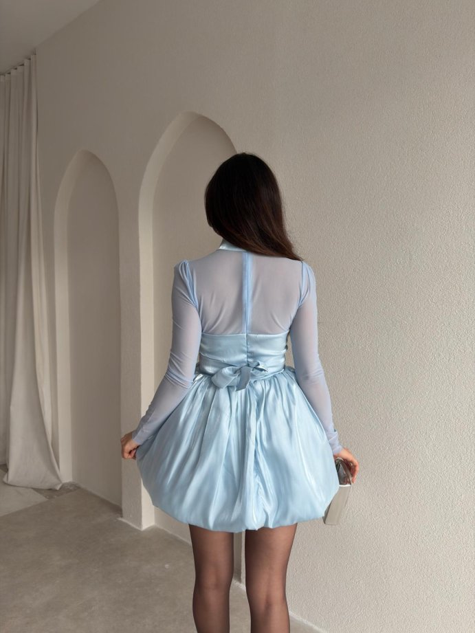SALLY Fularlı Elbise 7849 - Bebe Mavisi
