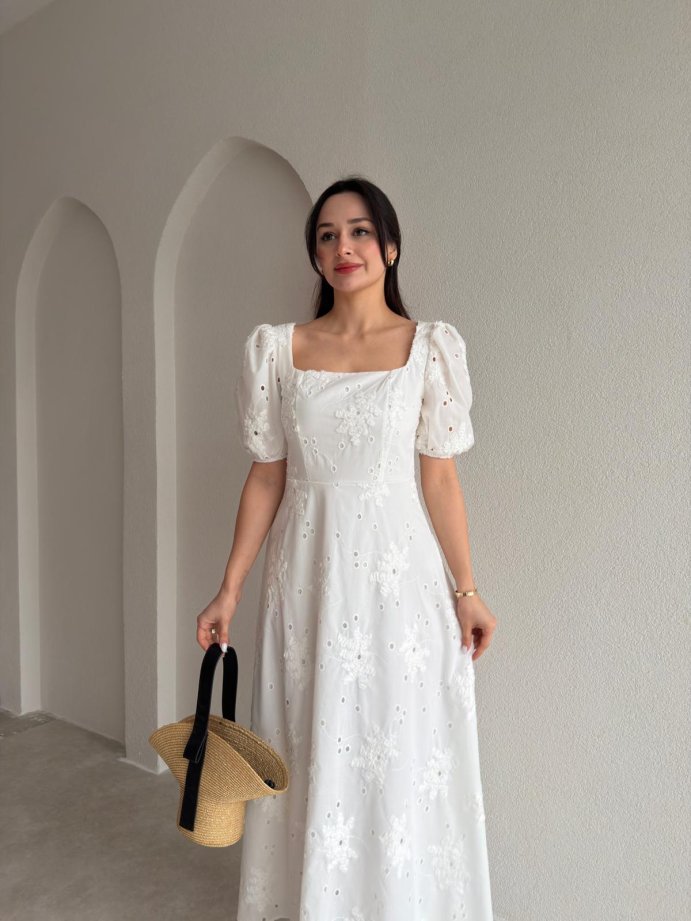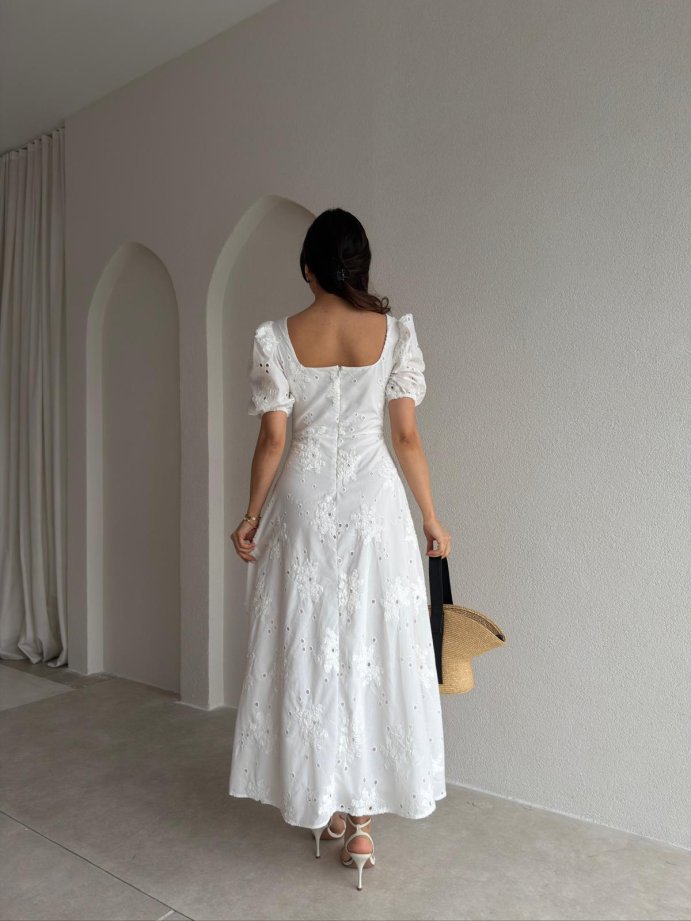LEVANTE Şallı Maxi Elbise 8997 - Beyaz