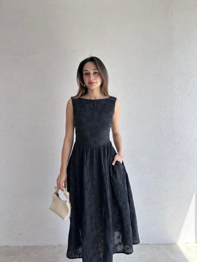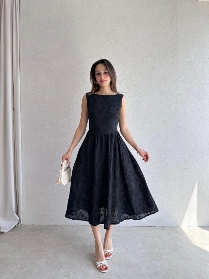EPHRON Dantel Detaylı Midi Elbise 7483 - Acı Kahve