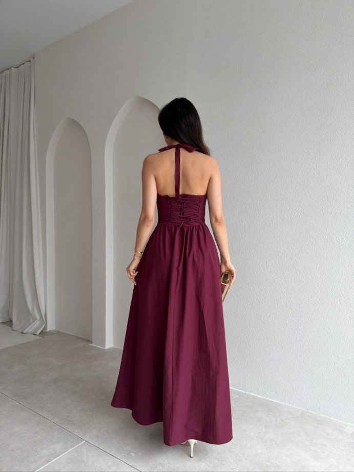 SABRİNA Maxi Elbise 8401 - Bordo