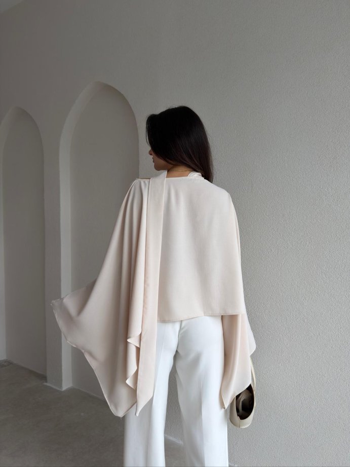 Şal Parçalı Bluz 8991 - Krem Rengi