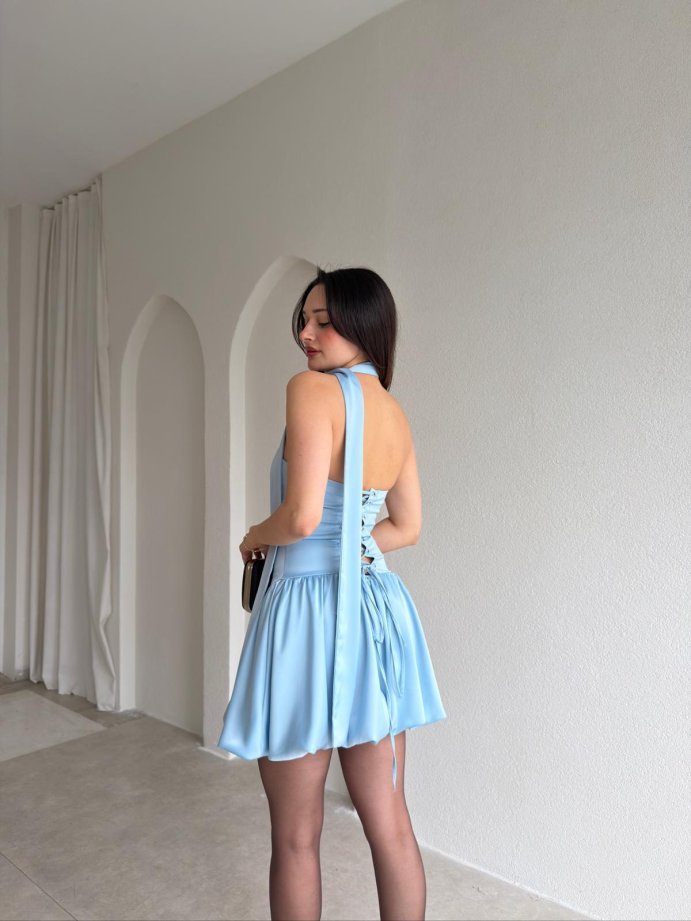 SALLY Fularlı Elbise 7849 - Bebe Mavisi