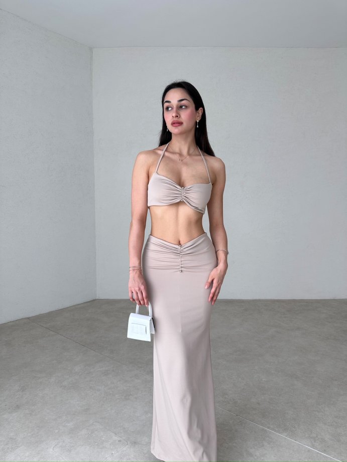 DİVİNE Keten Takım 9037 - Krem Rengi