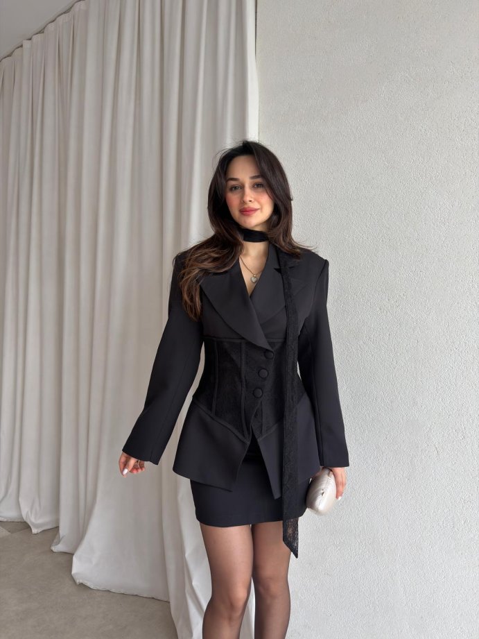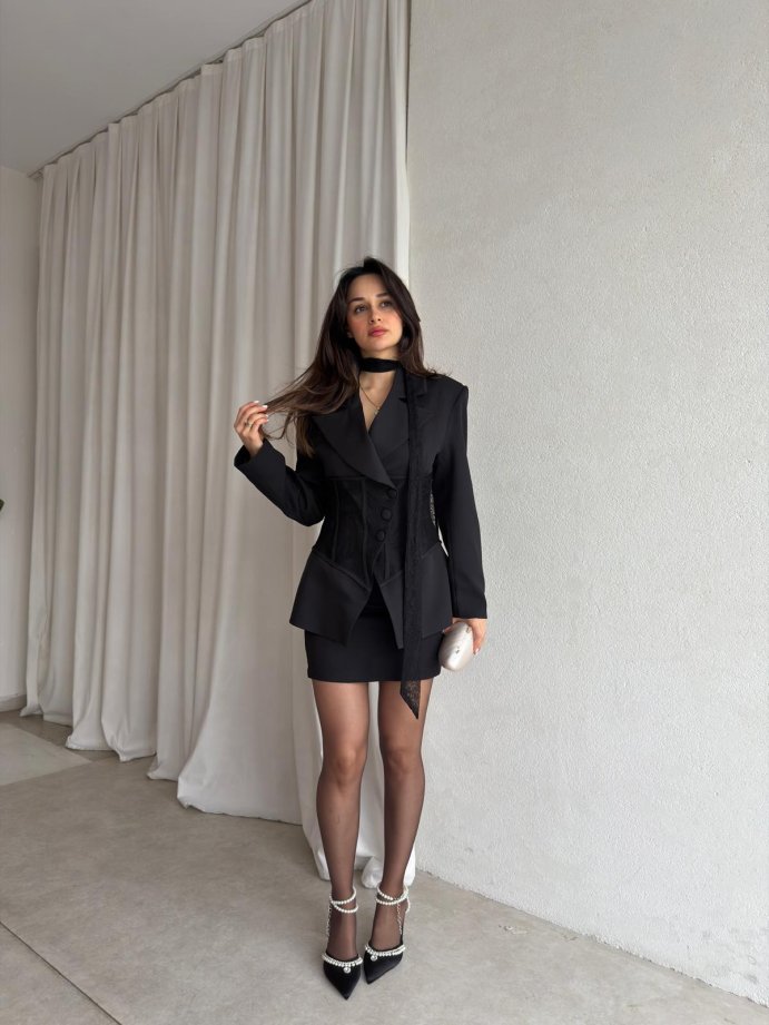 SAMANTA Fularlı Takım 8870 - Siyah