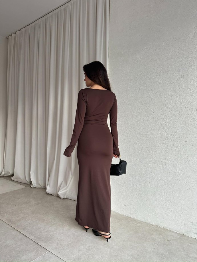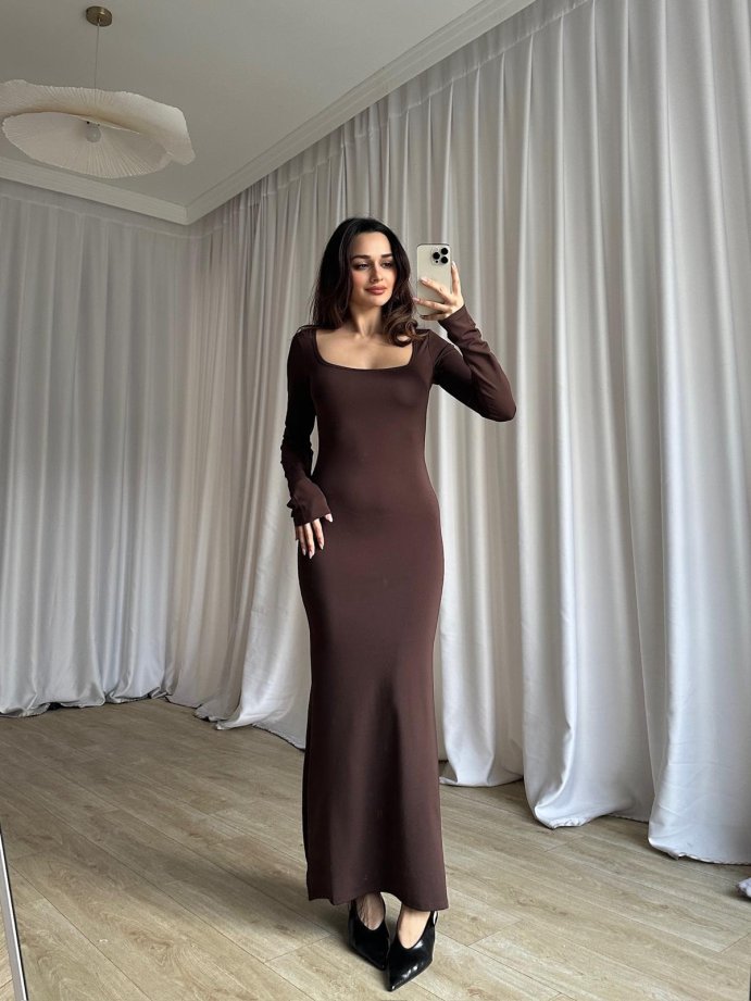 SANGRİA Maxi Kare Yaka Elbise 8261 - Acı Kahve