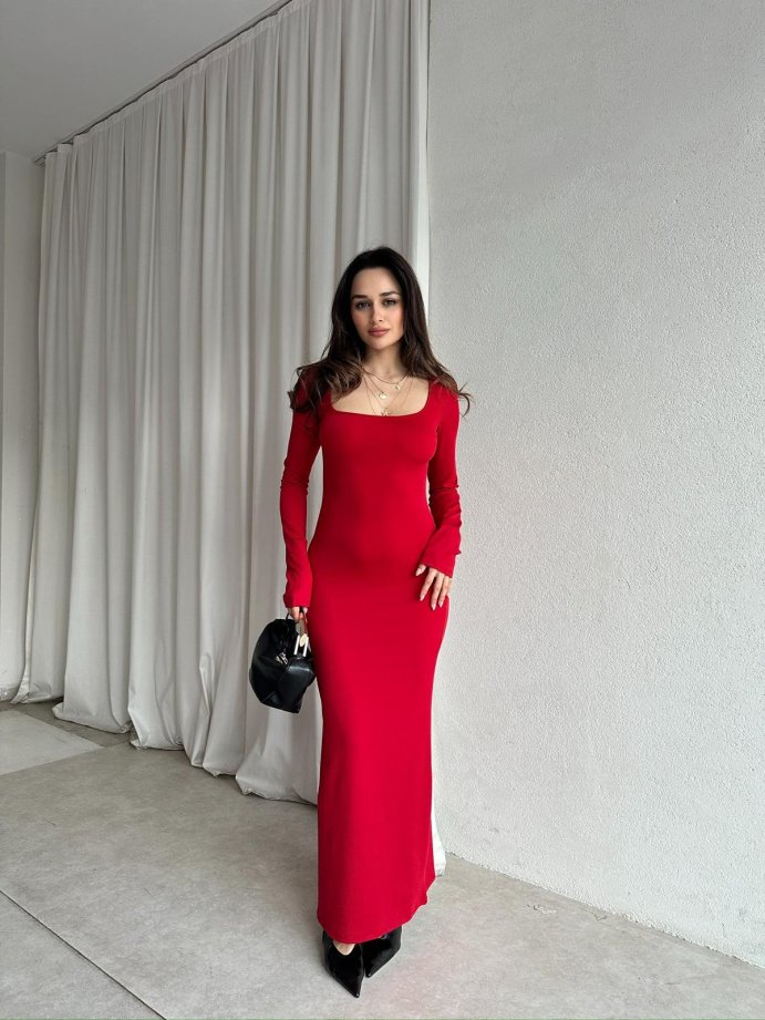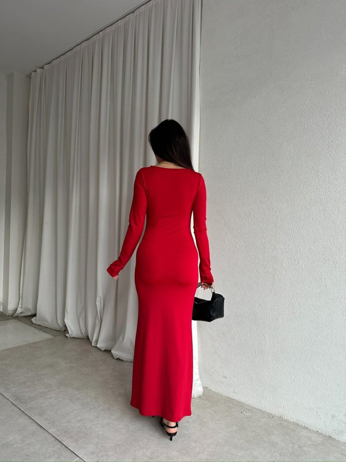 SANGRİA Maxi Kare Yaka Elbise 8261 - Kırmızı