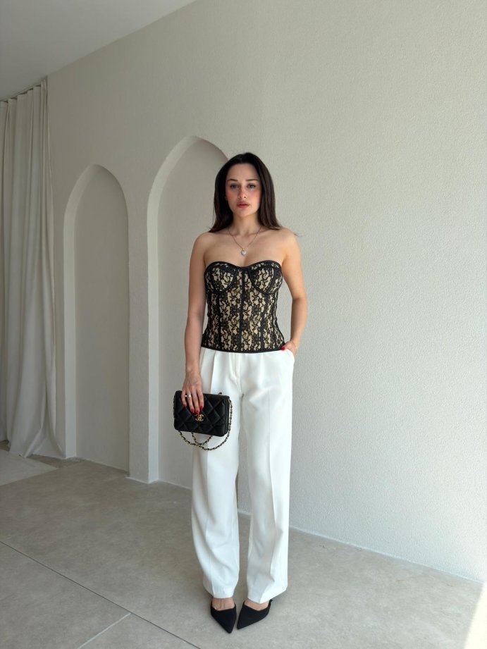 SANTA Dantelli Korse Üst 8941 - Siyah