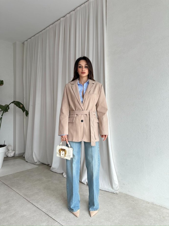 Ceket kuşaklı ve düğmelidir.