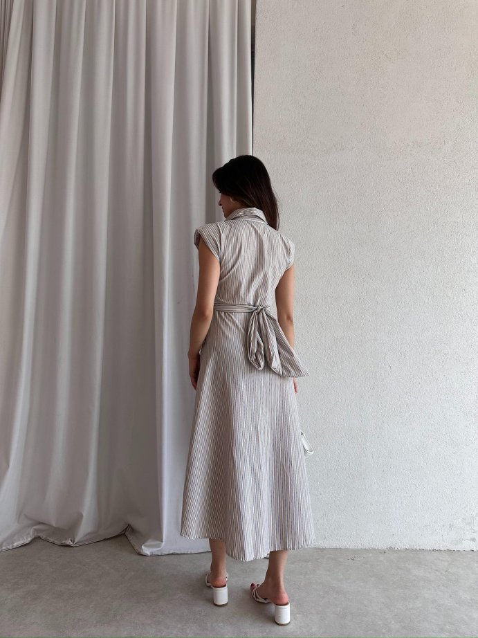 Dekolte Detaylı Midi THALES Elbise 5500 - Taş