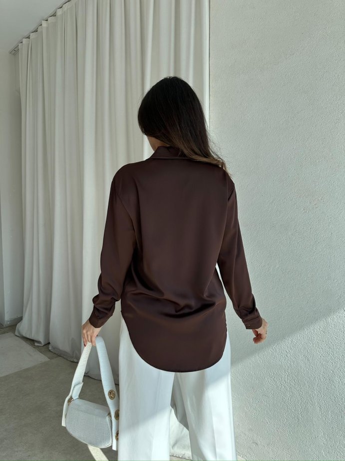 SİMPLE Saten Gömlek 8674 - Acı Kahve