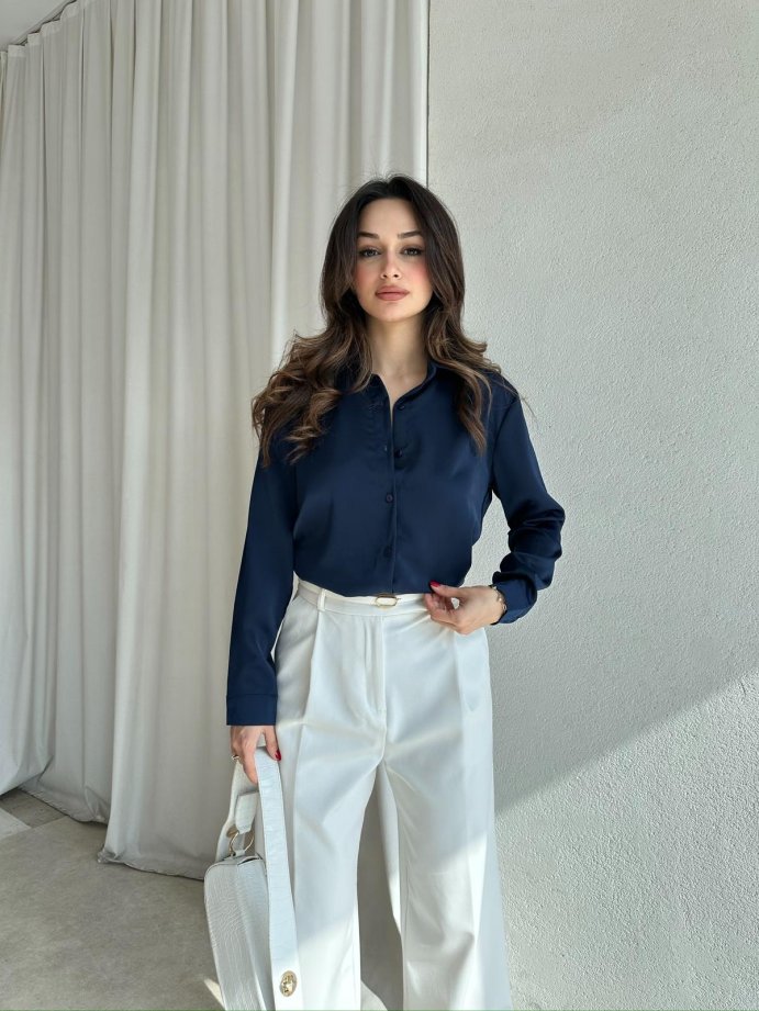 SİMPLE Saten Gömlek 8674 - Lacivert
