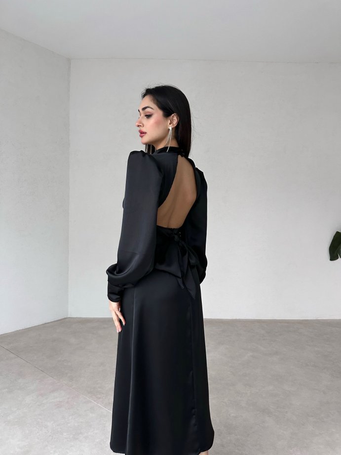 Sırt Dekolteli Midi MORRİS Elbise 3855 - Siyah