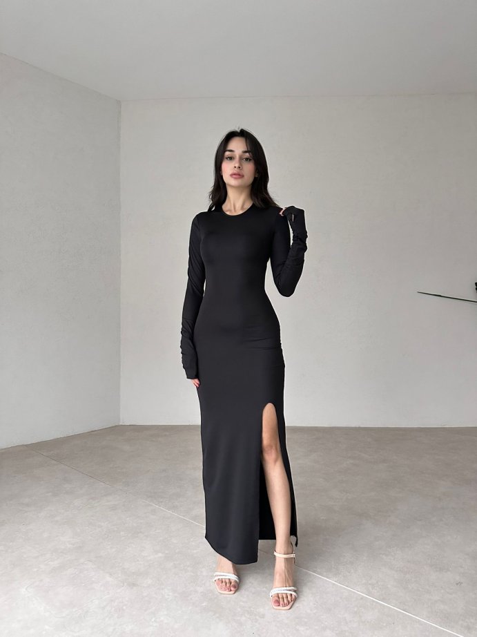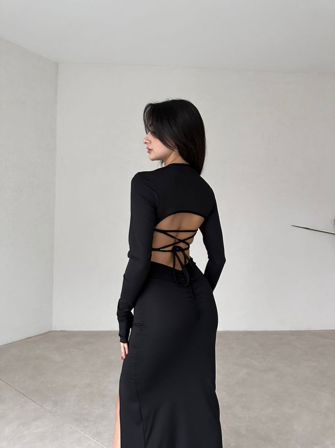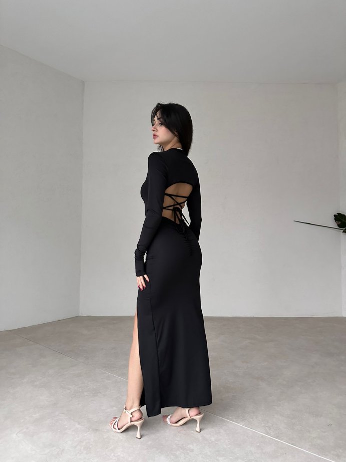 Sırt Dekolteli Midi POLD Elbise 2334 - Siyah
