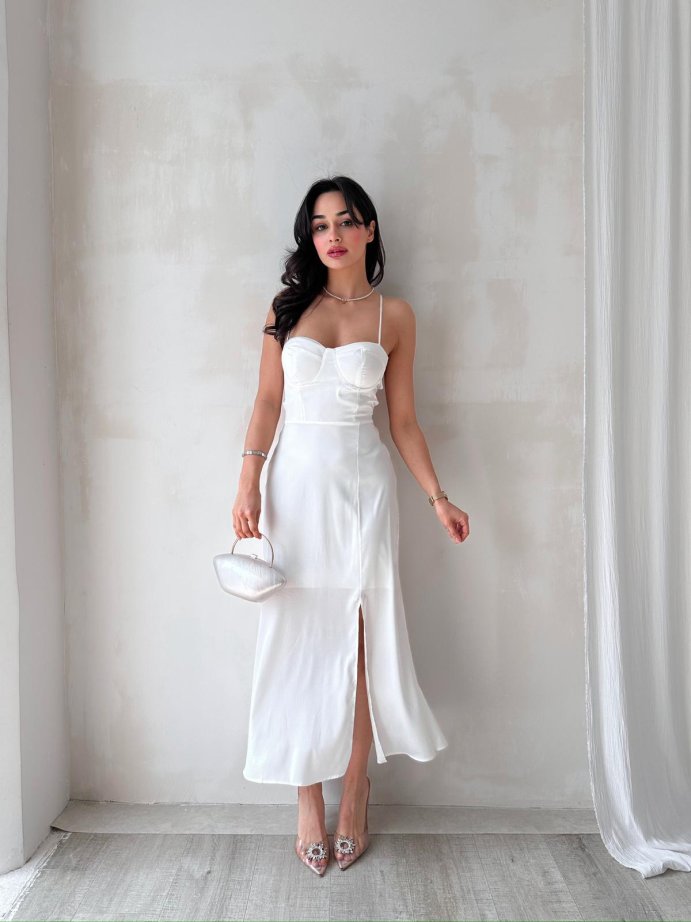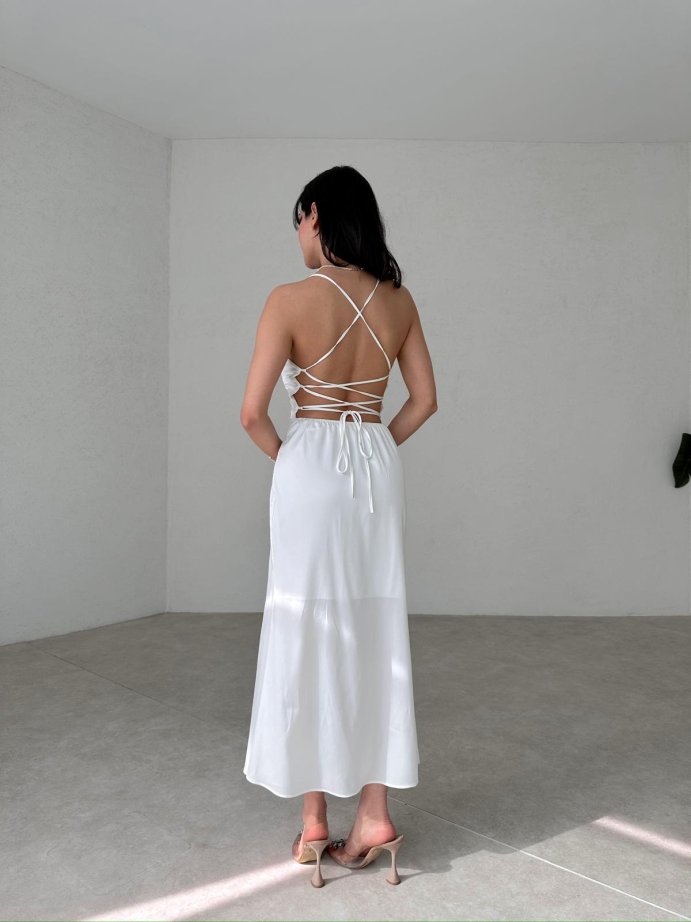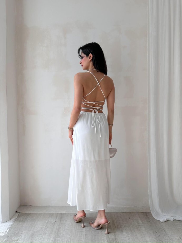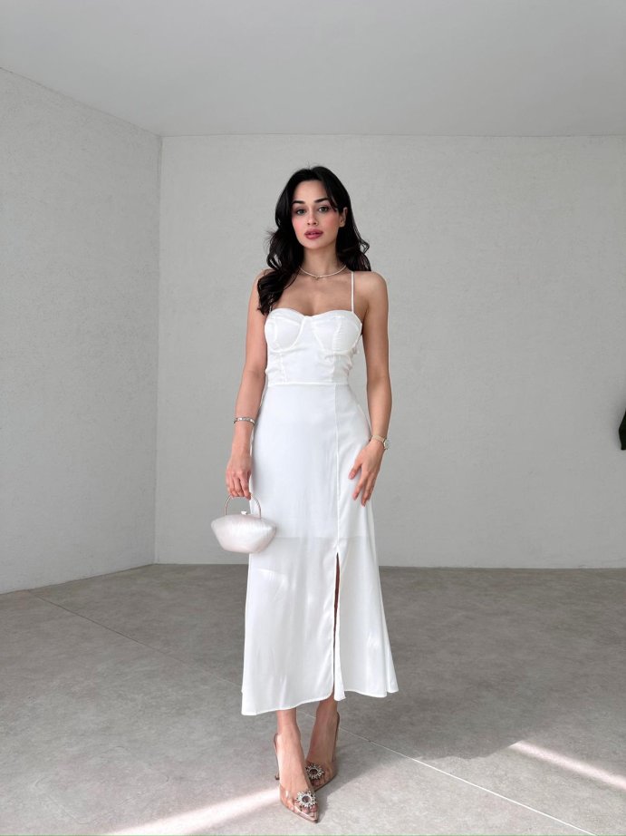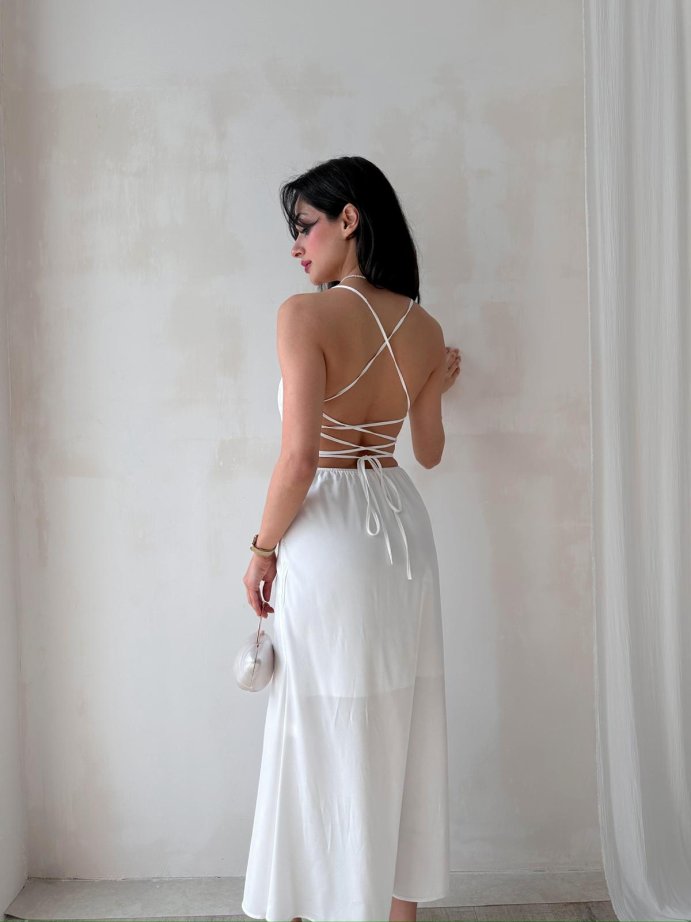 Sırt Dekolteli Midi RODOLF Elbise 5644 - Beyaz