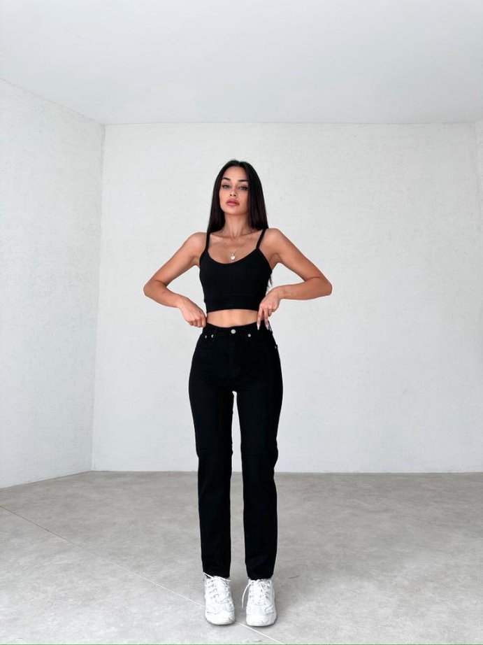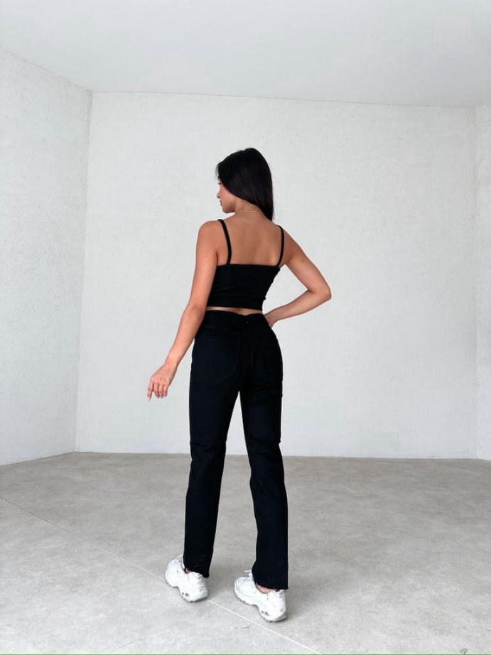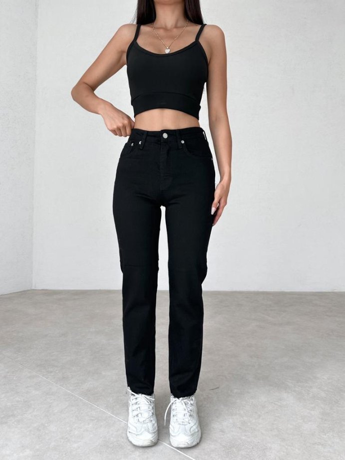 • Siyah Yüksek Bel Straight Jean 8596  kalıplıdır.