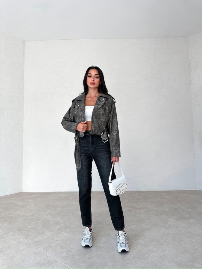Soyut Geçişli Deri ROOKER Ceket 4784