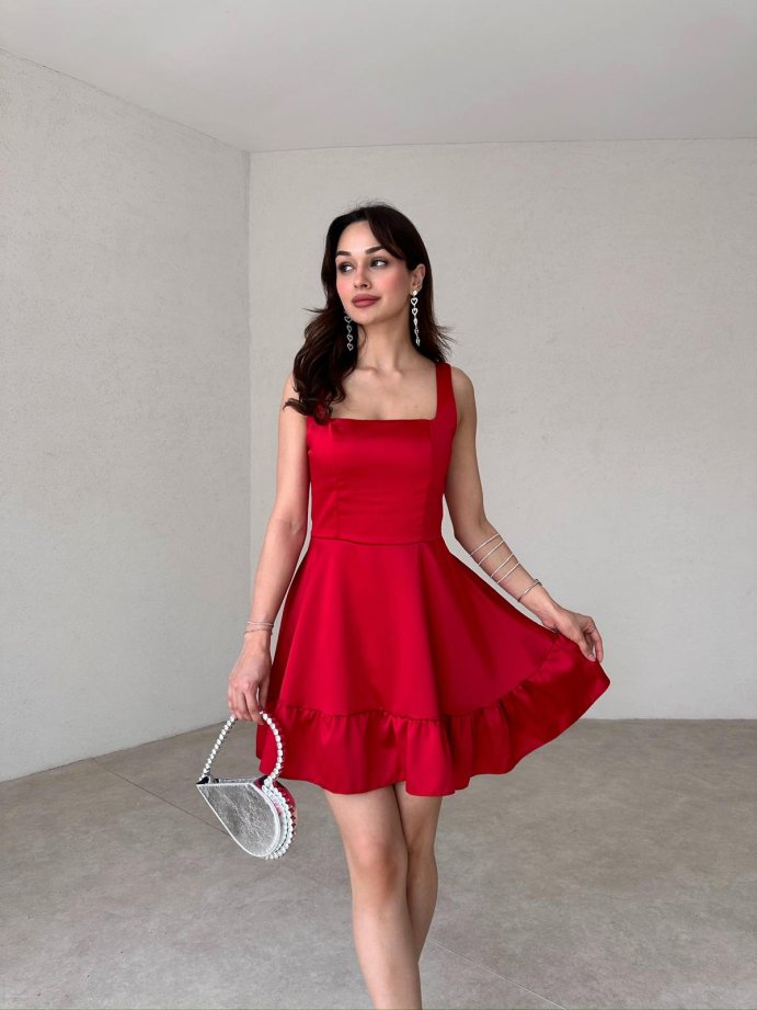 Pullu Mini KENDRİCK Elbise 2849 - Bordo