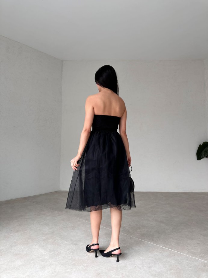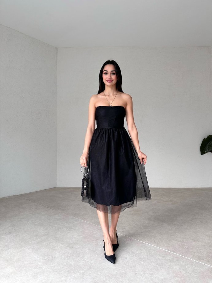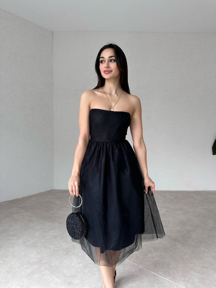 Straplez Midi JANOWİT Elbise 4401 - Siyah