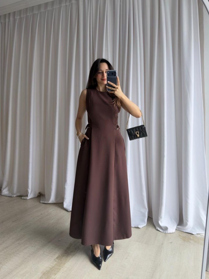 SUNSET Maxi Elbise 8887 - Acı Kahve