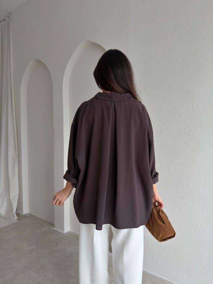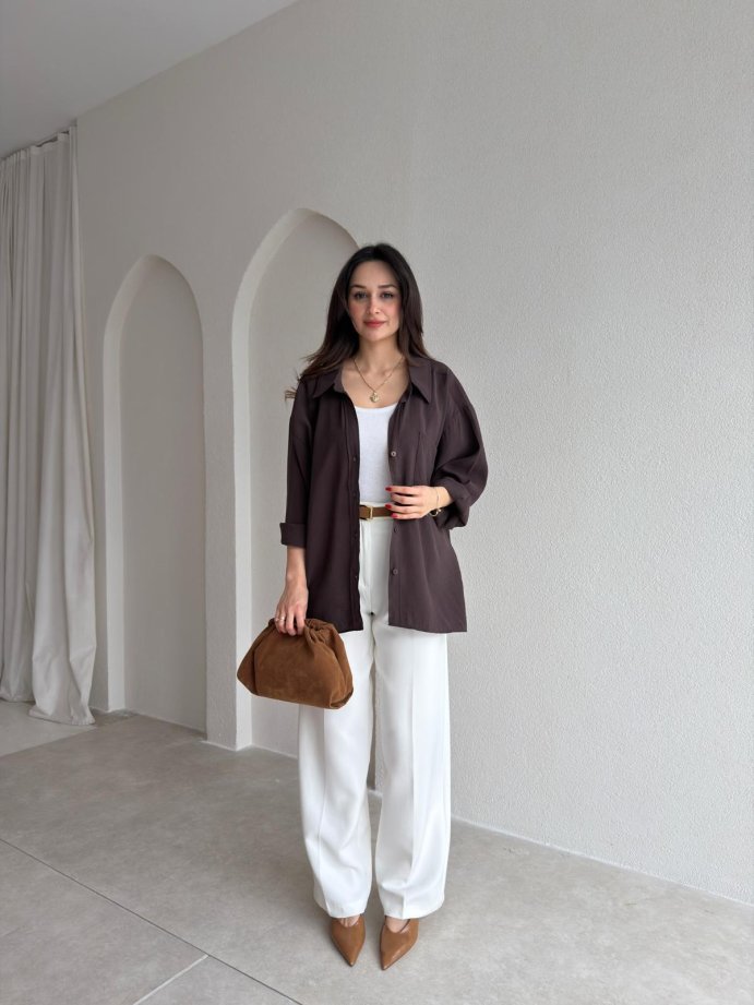 BELLA Çizgili Gömlek 1805 - Acı Kahve