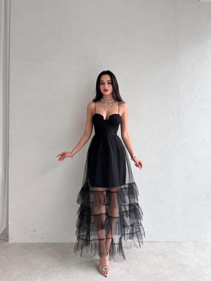 Tasarım Tül Detaylı Maxi Boy Lawless Elbise tam kalıplıdır