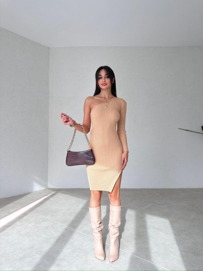 Tek Omuz Mini VENÜS Elbise 1293