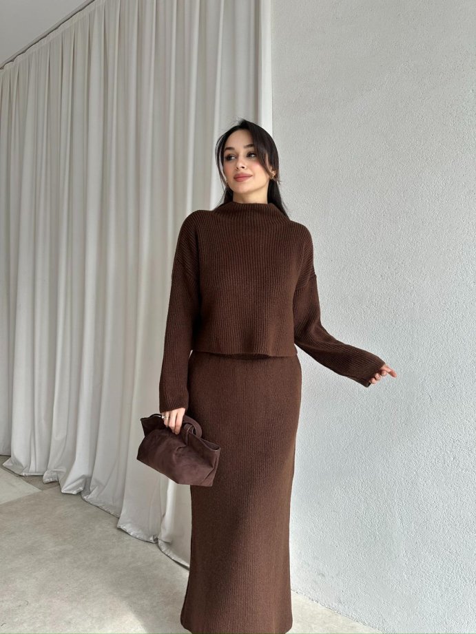 CANDİS Triko Fularlı Takım 8512 - Kahverengi