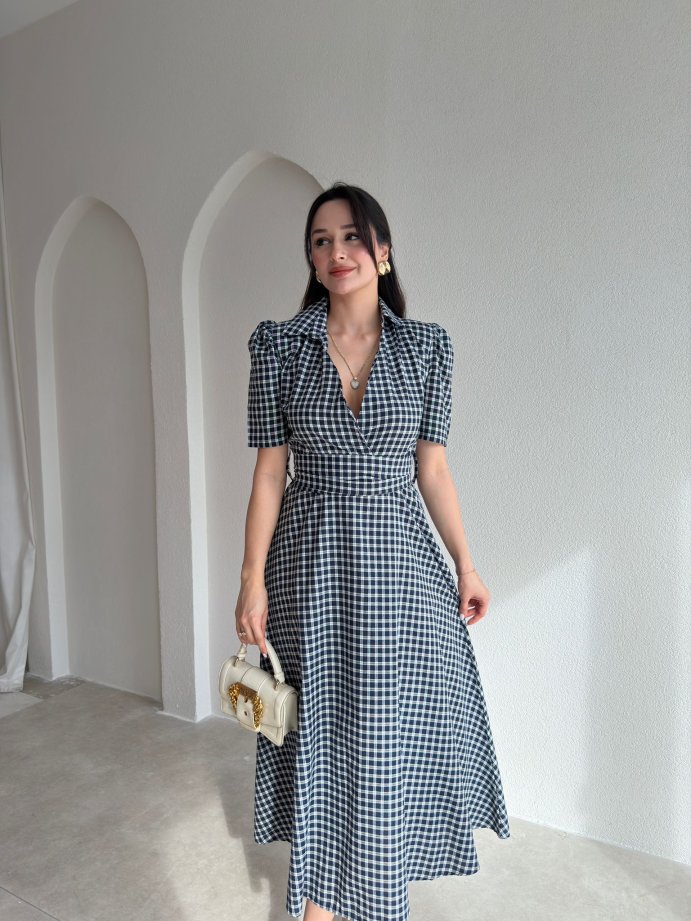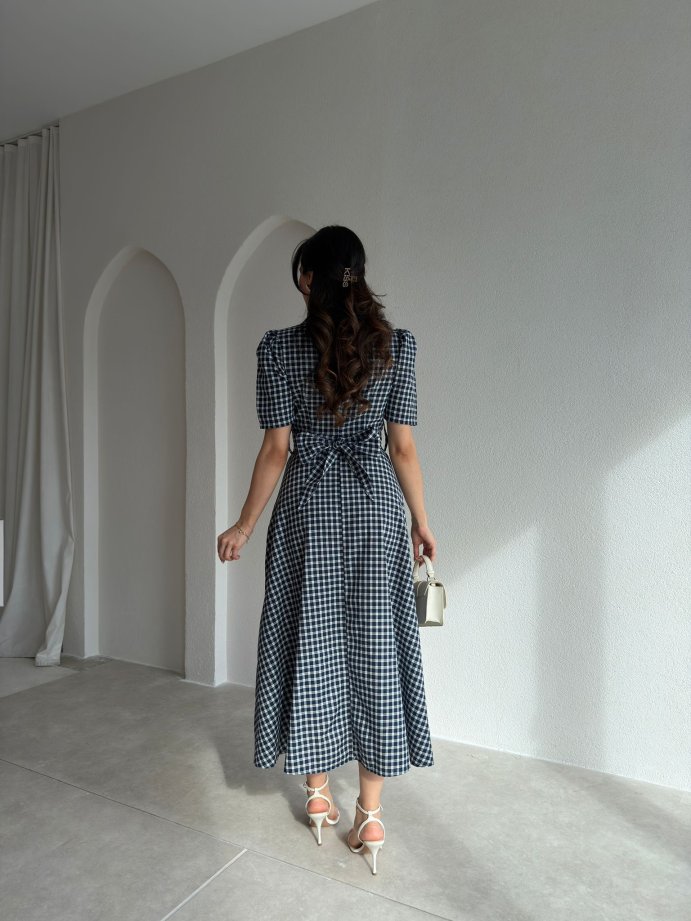 VALENCİA Ekoseli Midi Elbise 8996 - Lacivert