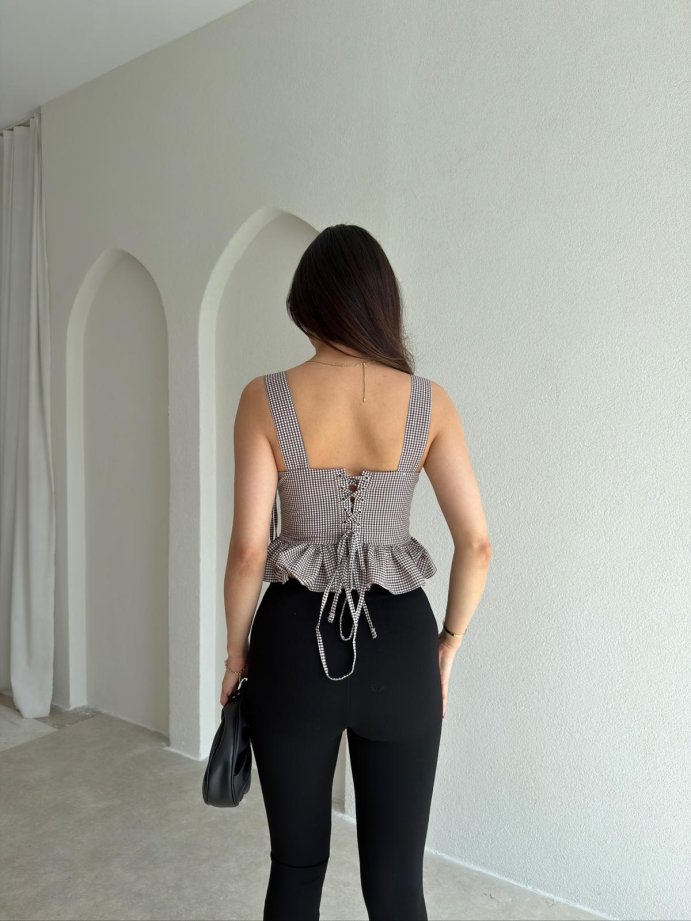 VANİTA Pötikareli Bluz 6883 - Kahverengi