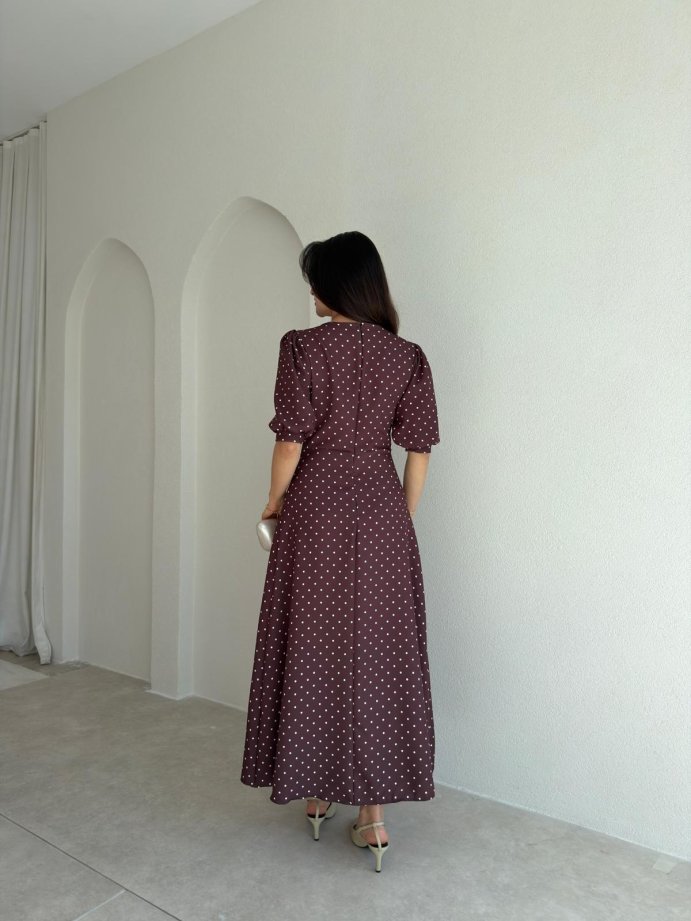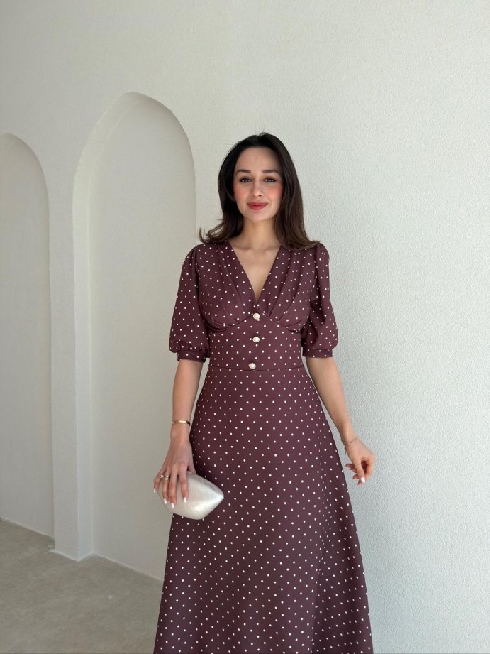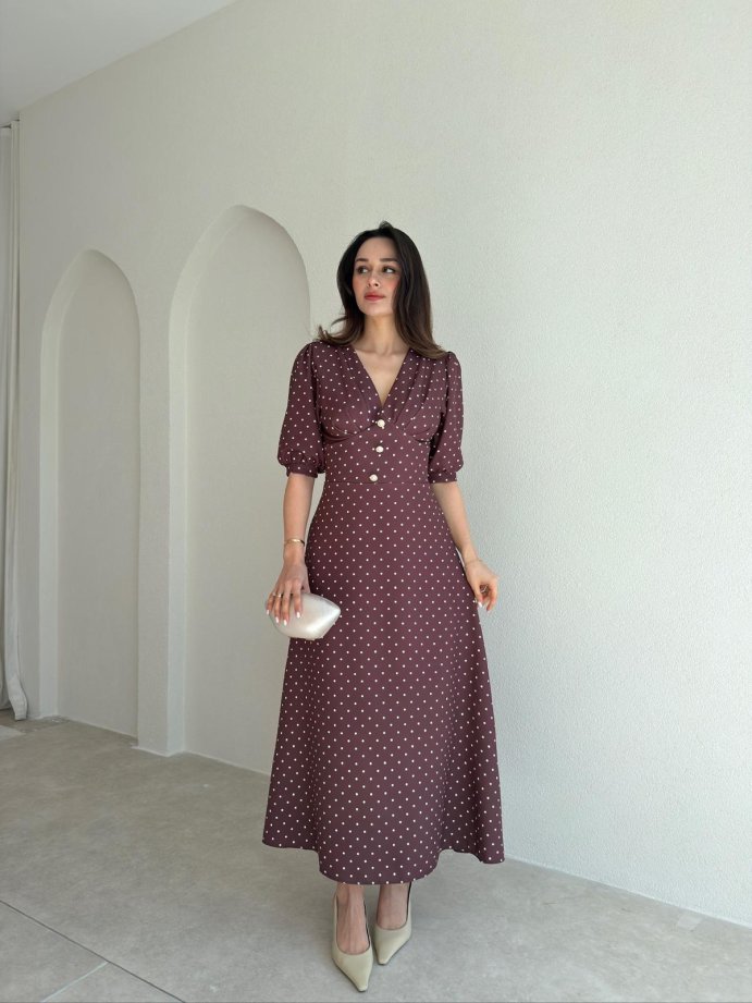 VEROS Puantiyeli Midi Elbise 3942 - Acı Kahve