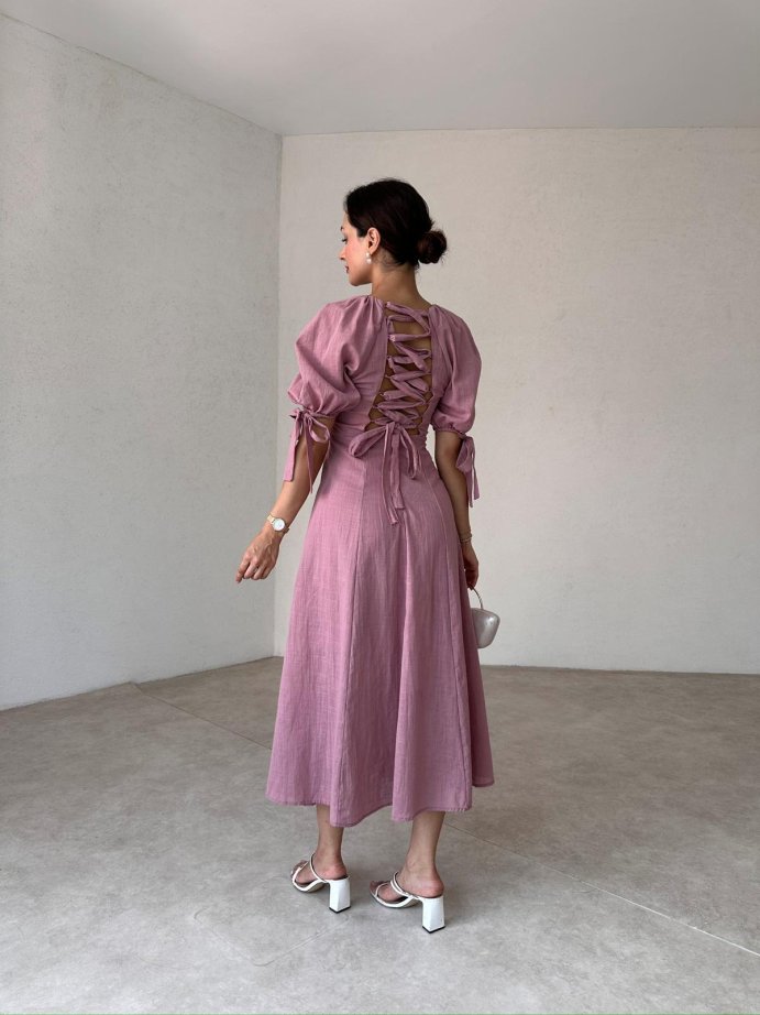 Elbise sırt dekolte detayı ayarlanabilir formdadır.
