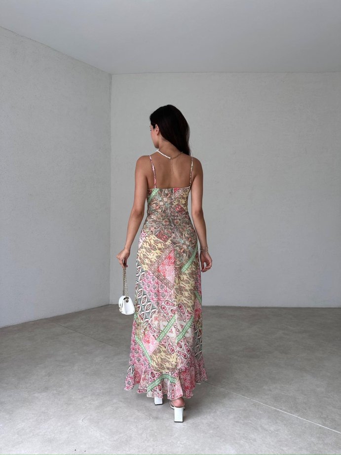 VİLOGE Maxi Elbise tam kalıplıdır.
