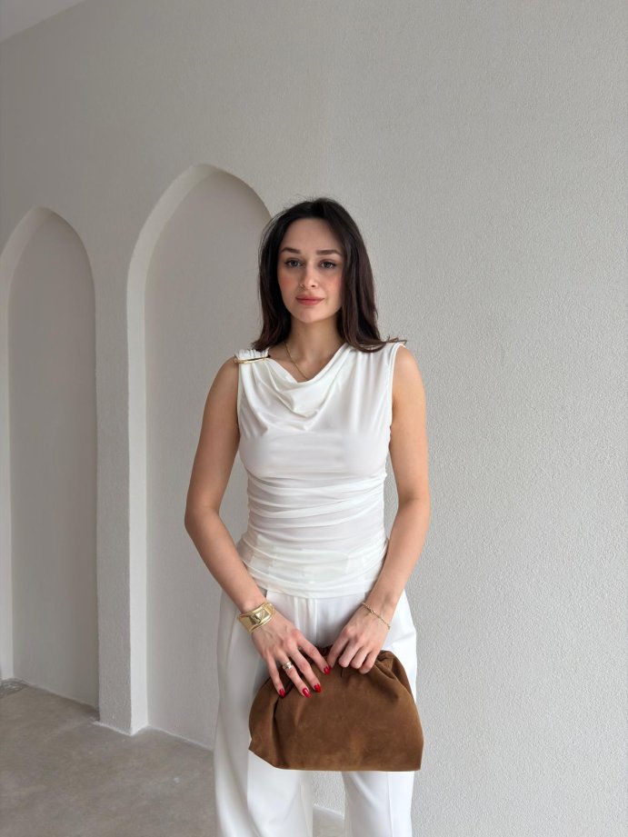 VİSTA Broş Detaylı Bluz 5451 - Beyaz