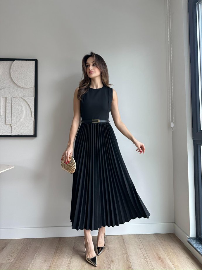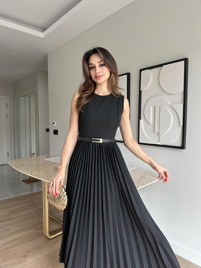 VOVİA Midi Elbise 8777 - Siyah