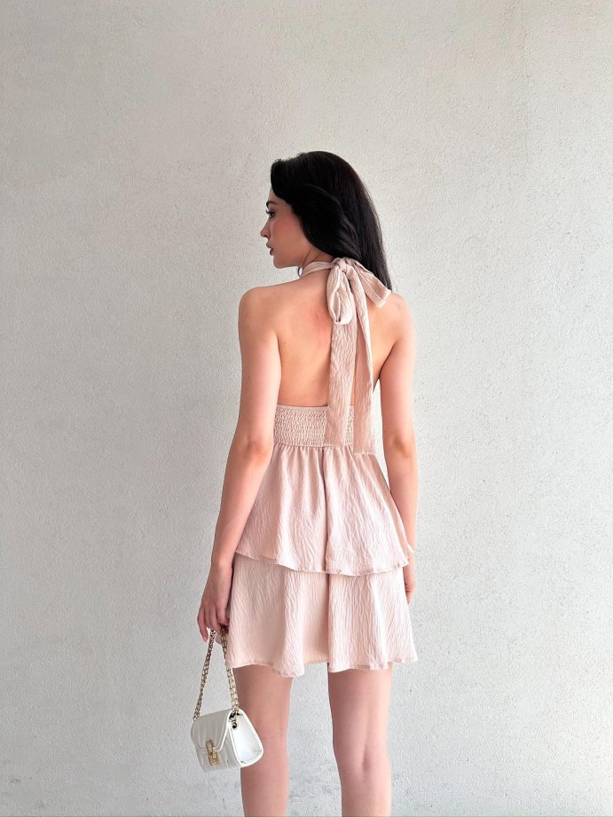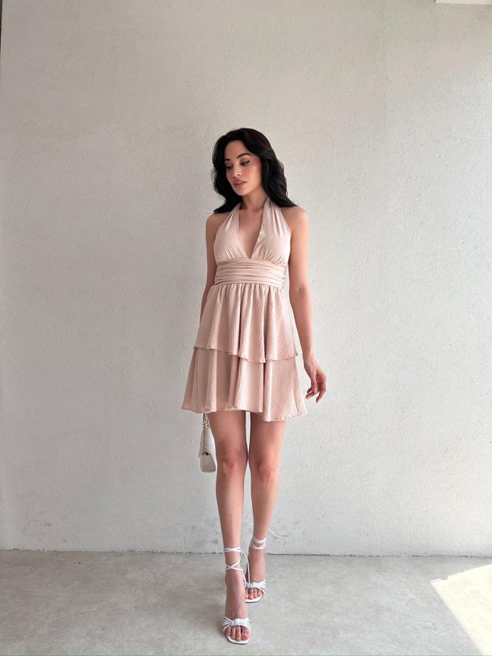WARSHEL Mini Elbise 2872 - Vizon