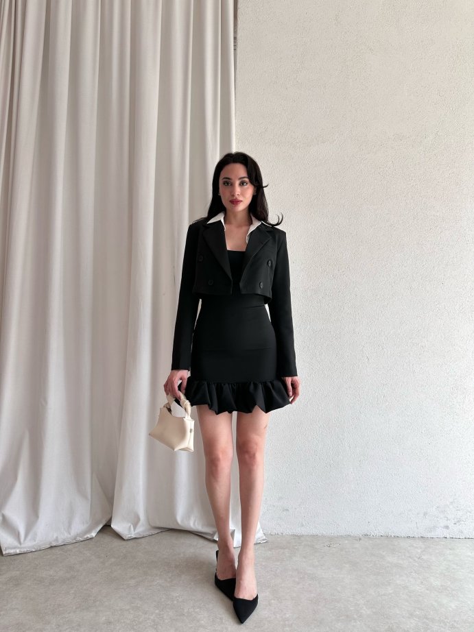 Takım gömlek detaylıdır, ceketle birleşiktir.