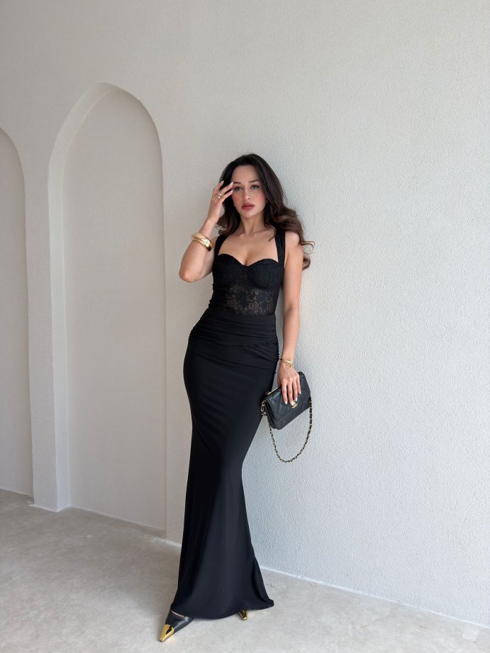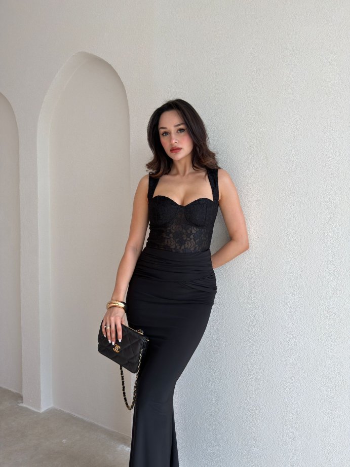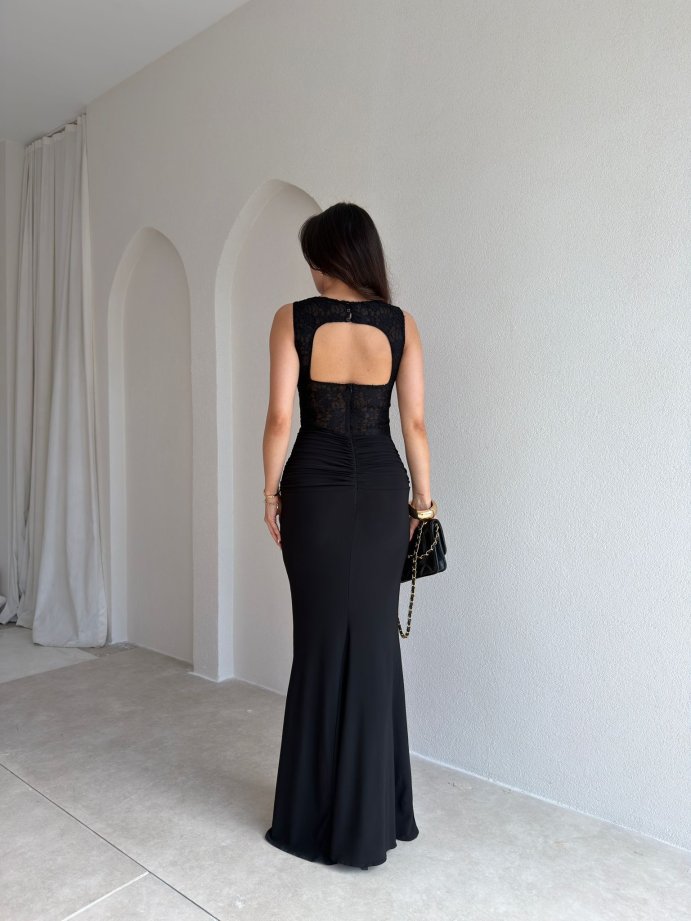 WESLEY Maxi Dantelli Elbise 9004 - Siyah
