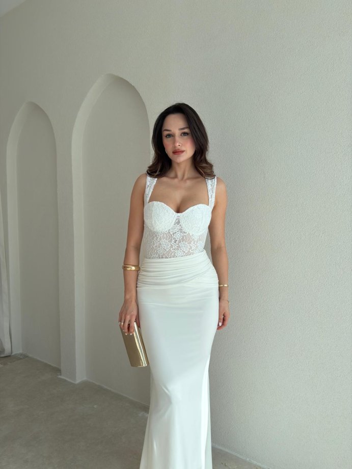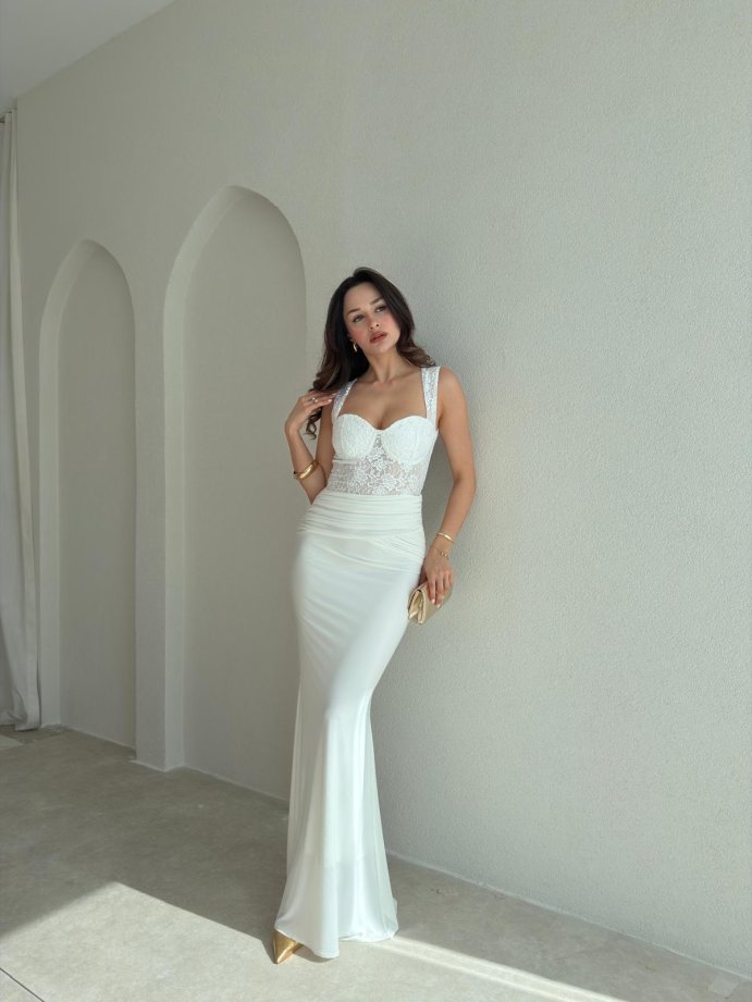 WESLEY Maxi Dantelli Elbise 9004 - Beyaz