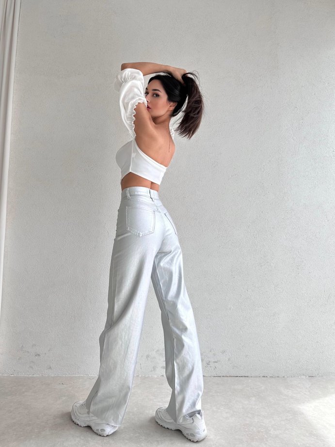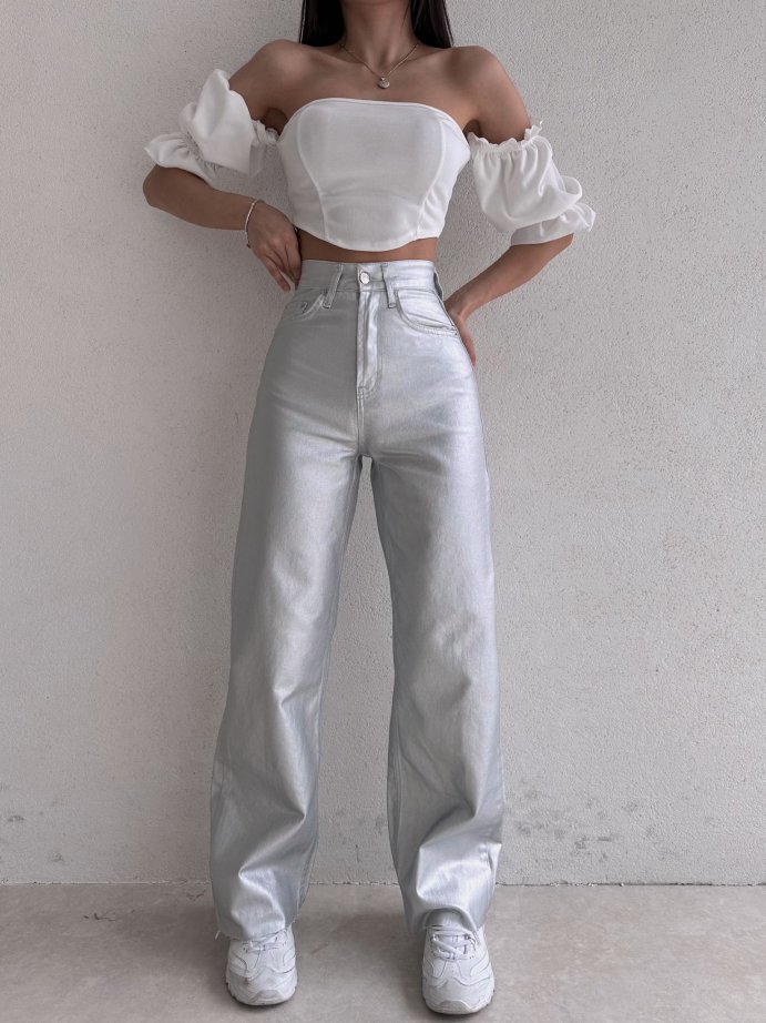 Wıde Leg Yüksek Bel Gümüş Jean 8727
