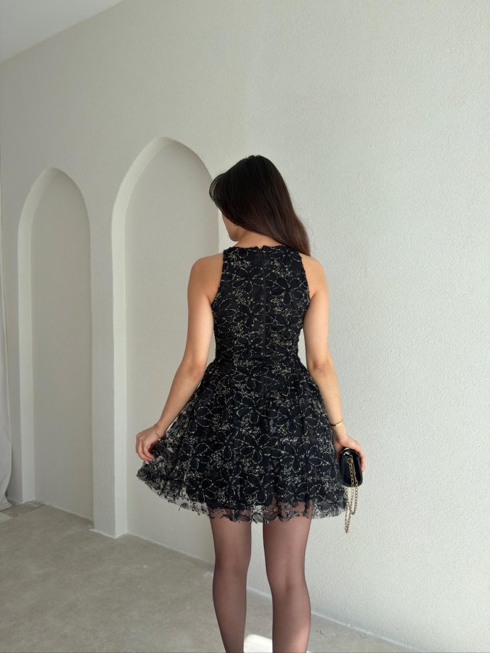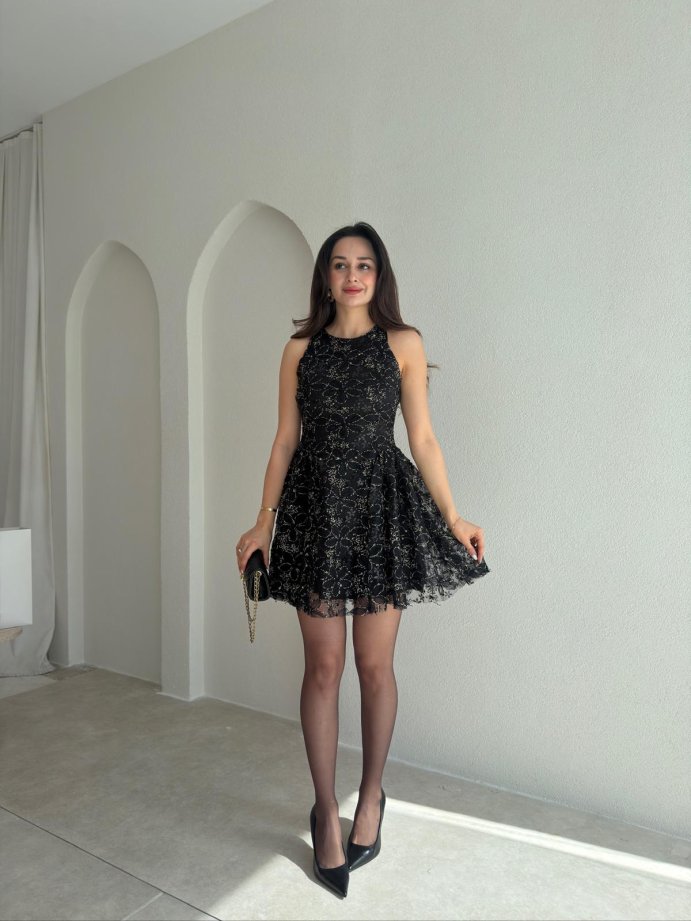 LUJO Dantelli Mini Elbise 9056 - Siyah