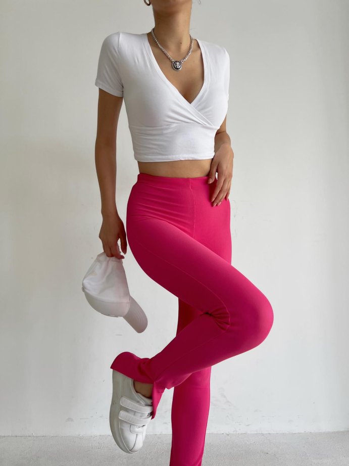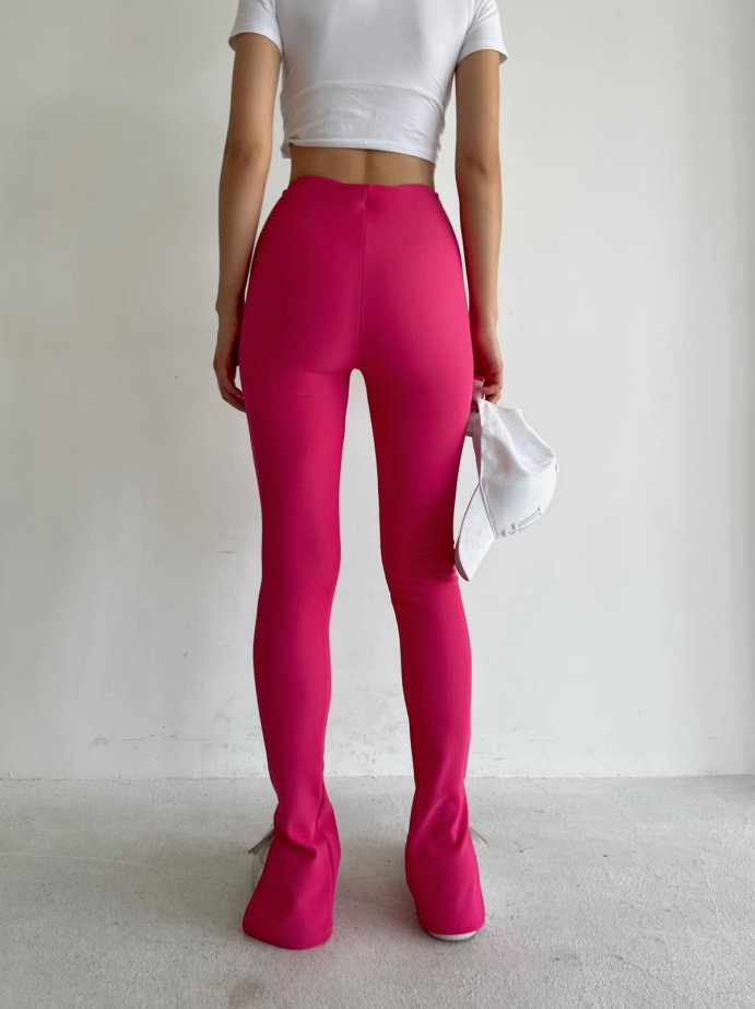 Yan Yırtmaçlı Yüksek Bel Jesse Tayt 9553 - Fuşya