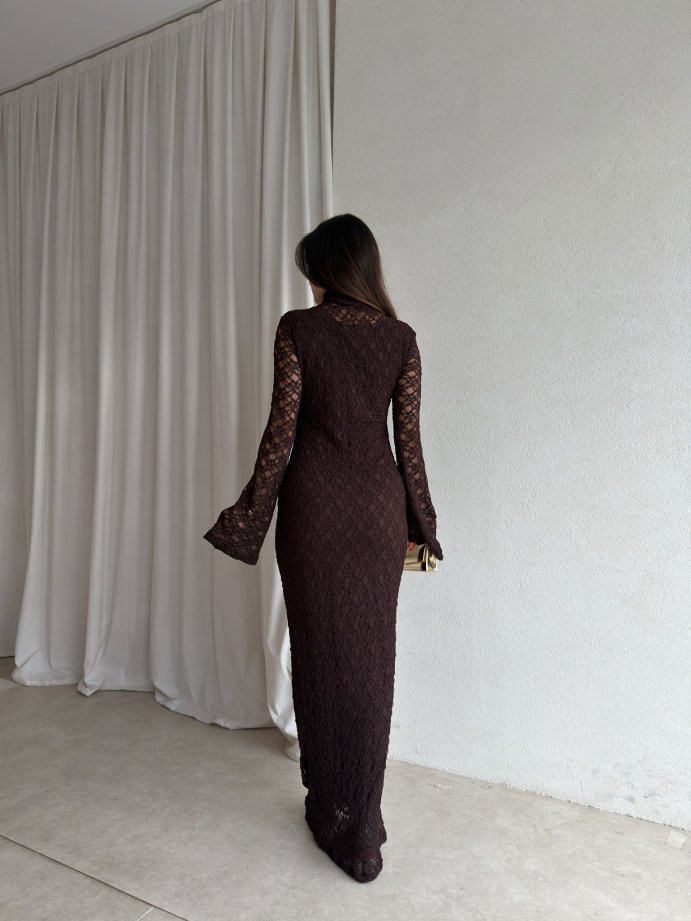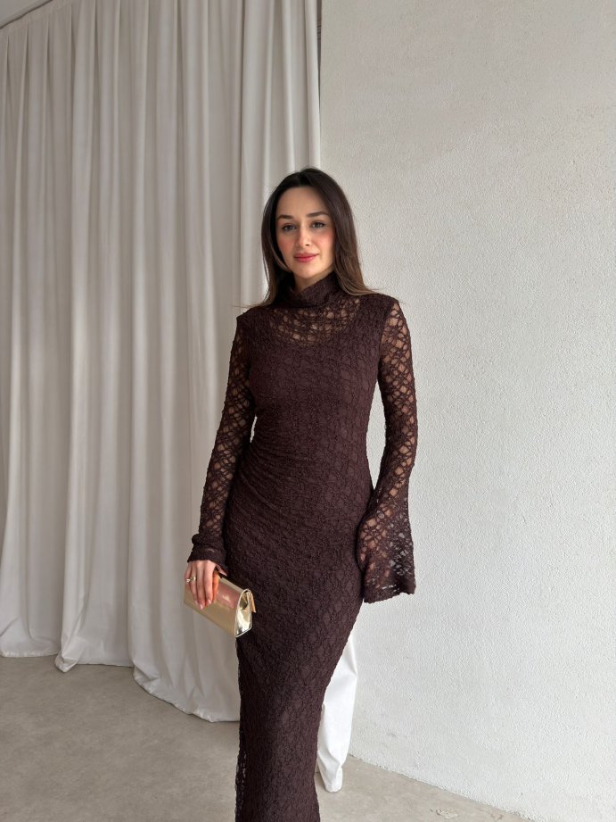 YORYO Dantelli Elbise 8221 - Acı Kahve