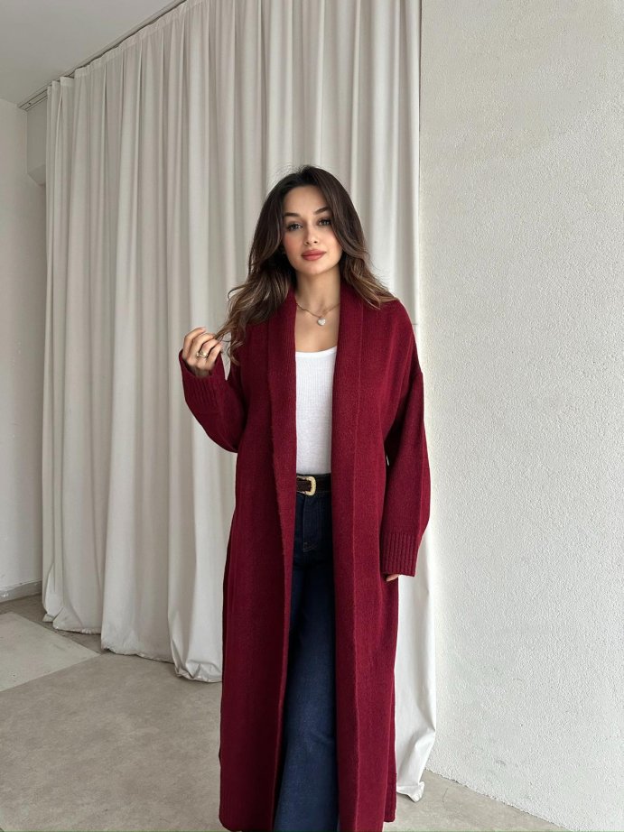 Hırka omuzdan aşağı 123 cm uzunluğundadır.