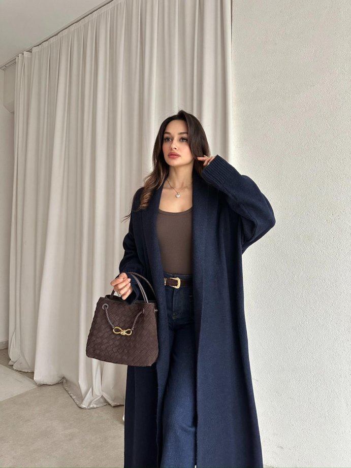 Hırka omuzdan aşağı 123 cm uzunluğundadır.