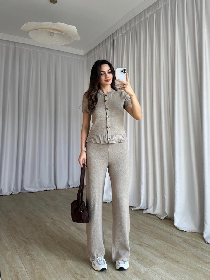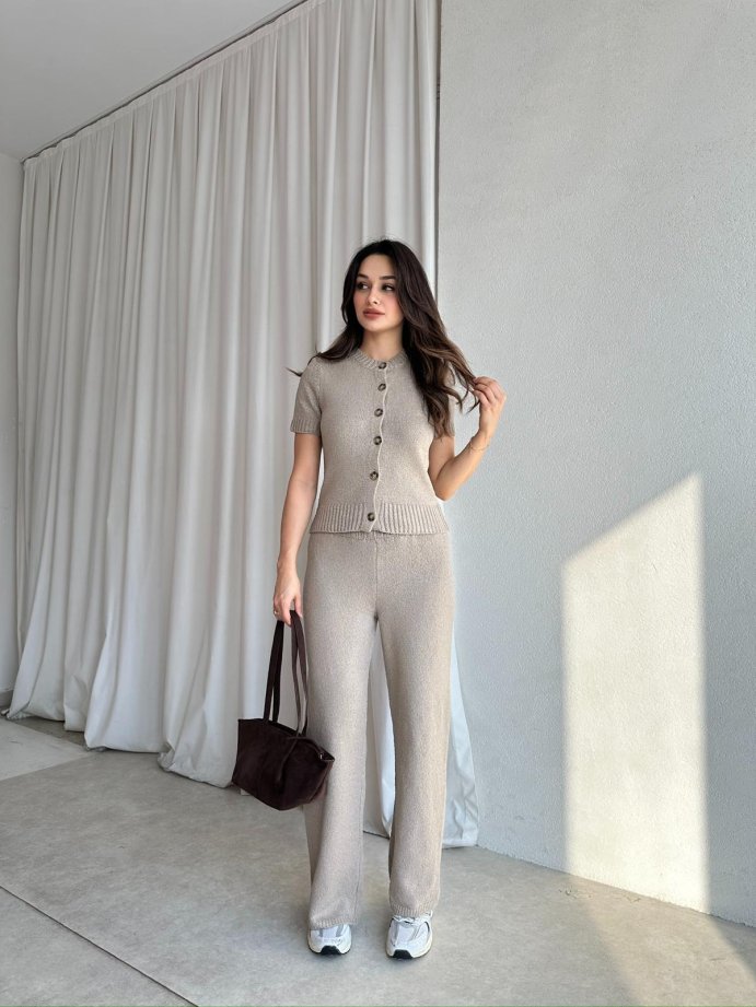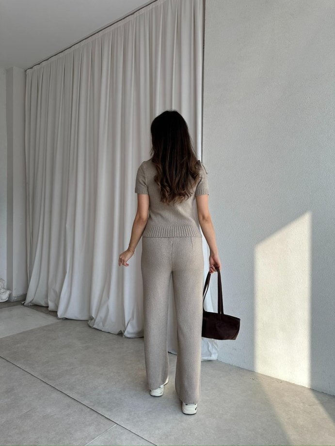 Takım triko kumaştır, beli lastiklidir,